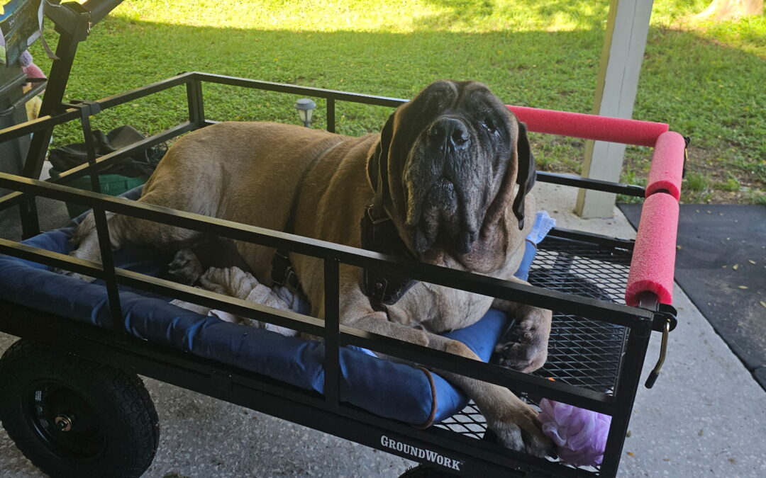 Frank was adopted from HH in 2021 and was enjoying life until he suddenly started having trouble walking. His mom contacted us, and we were able to get him into Blue Pearl’s neurology department right away. After an ultrasound and MRI, they determined that Frank has a malignant tumor in the temporal muscle on the right side of his face. It is somewhat mysterious as to why that is affecting his overall mobility, so we are still investigating. HH Helps is happy to participate in Frank’s care as we all love that big guy! All prayers and donations are appreciated so that we can help Frank get whatever help he needs.